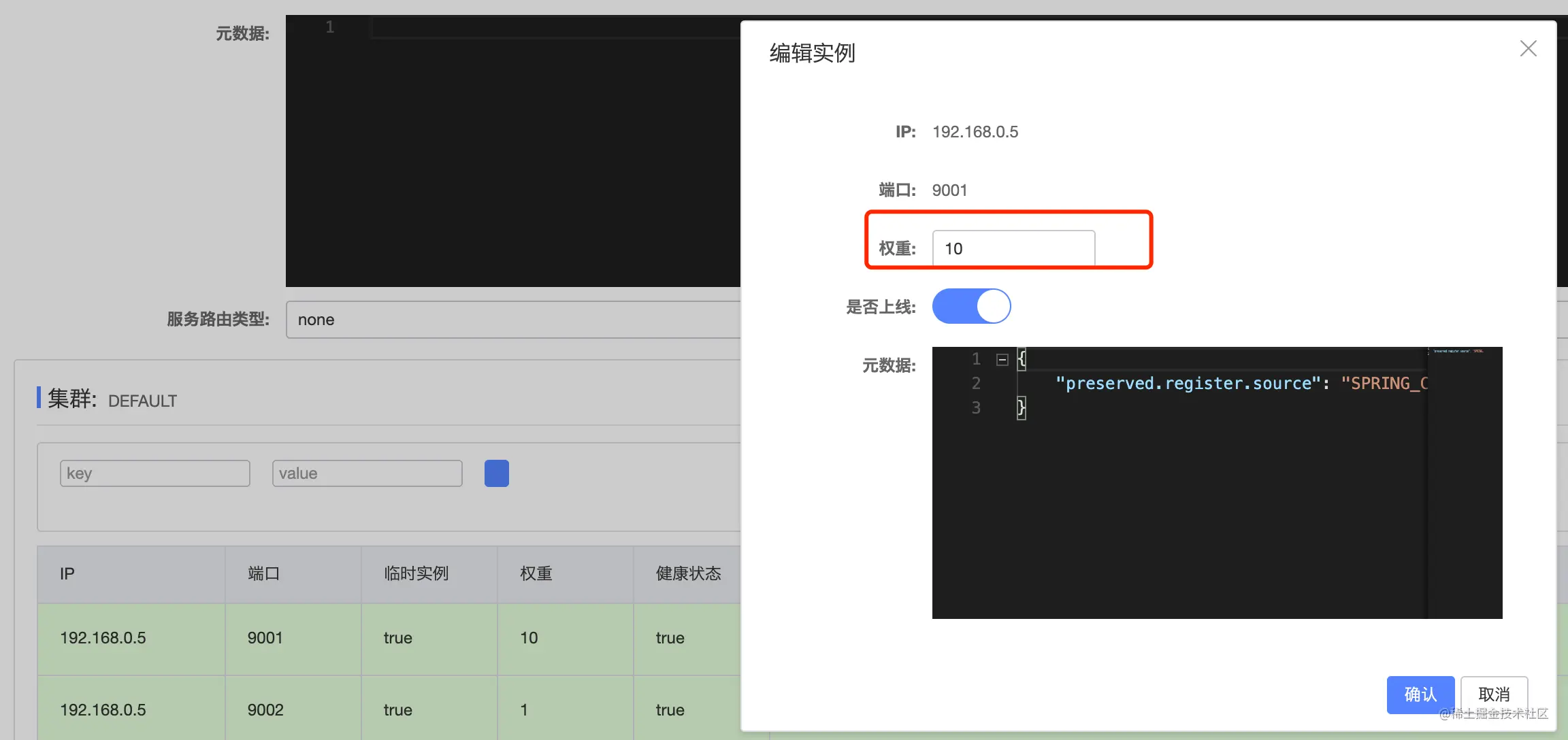直接在页面上修改权重,是无效的。因为负载均衡中引入了ribbon,没有改ribbon配置,还是使用的ribbon的默认负载均衡策略。