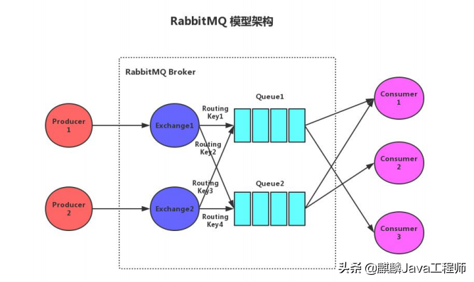 Queue:队列,是RabbitMQ的内部对象,用于存储消息。RabbitMQ中消息只能存储在队列中。生产者投递消息到队列,消费者从队列中获取消息并消费。多个消费者可以订阅同一个队列,这时队列中的消息会被平均分摊(轮询)给多个消费者进行消费,而不是每个消费者都收到所有的消息进行消费。