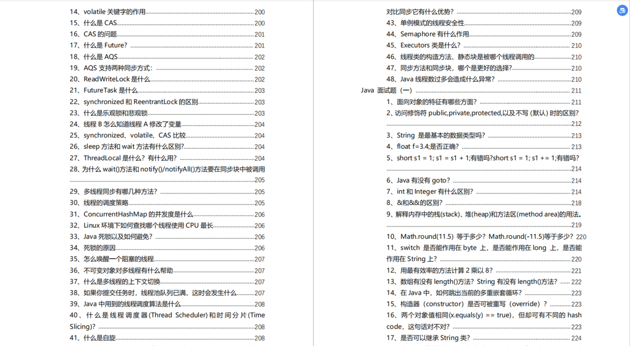很多人会问,我对以上知识点并不熟悉掌握,可我并不知道从哪开始学,这些知识点又太多太杂了,我该侧重学哪些知识点呢?这些问题你不用担心,以上面试题和知识点我已经全部帮你整理成一份将近500页的PDF文件,每个知识点都有单独的分区和面试题整理,这份PDF完全是按照java工程师的方向整理的。
