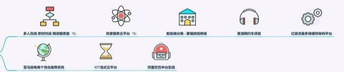 比如再造淘宝项目落地实战,某滴网约车项目,多人在线即时对战网游服务器,和家云服务平台,前后端分离某喵微信商城,亿级流量多级缓存平台,亚马逊电商个性化推荐系统,IOT流云式平台,阿里巴巴中台实战,年初跳槽后去阿里面试6轮之后定级是P6。