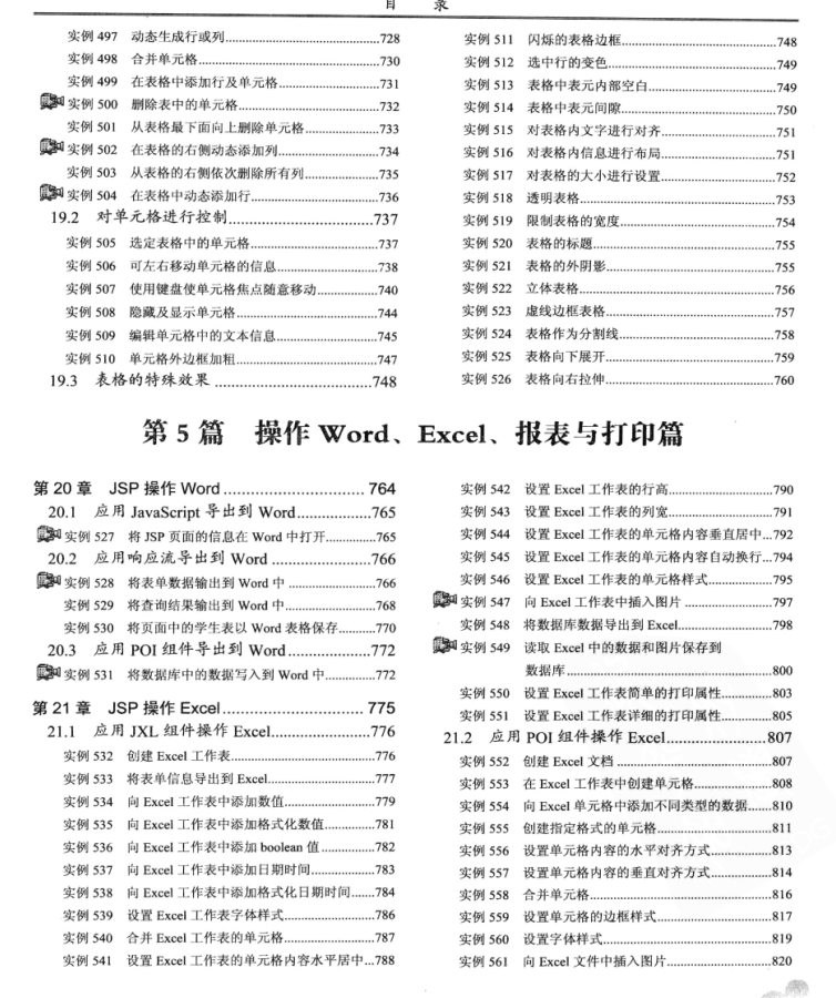 今天给大家推荐的这本书以开发人员在项目开发中经常遇到的问题和必须掌握的技术为中心,介绍了应用Java Web进行程序开发的各个方面的知识和技巧,主要包括Java Web编程基础、文件操作管理、图形图像与多媒体技术、窗体应用技术、JSP操作Word与Excel等。全书分6篇23章,共计600个实例和600个经验技巧。每个实例都是经过精心筛选的,具有很强的实用性,其中一些实例是开发人员难于寻觅的解决方案。
