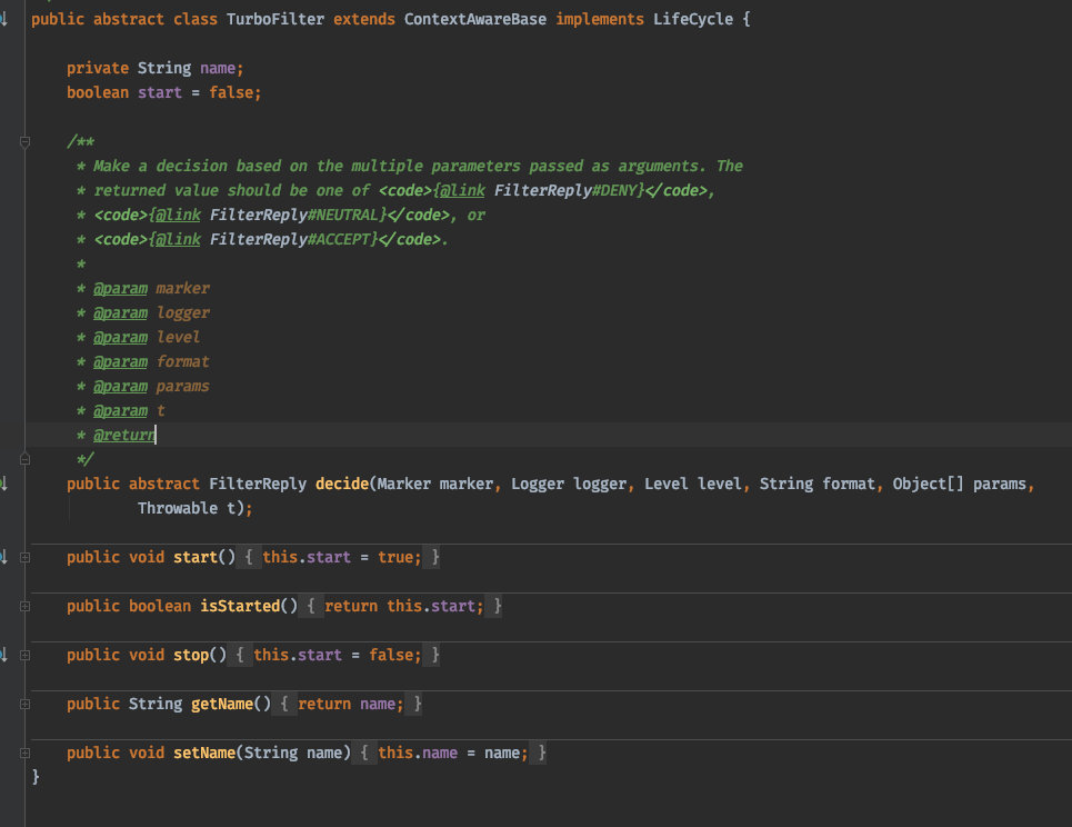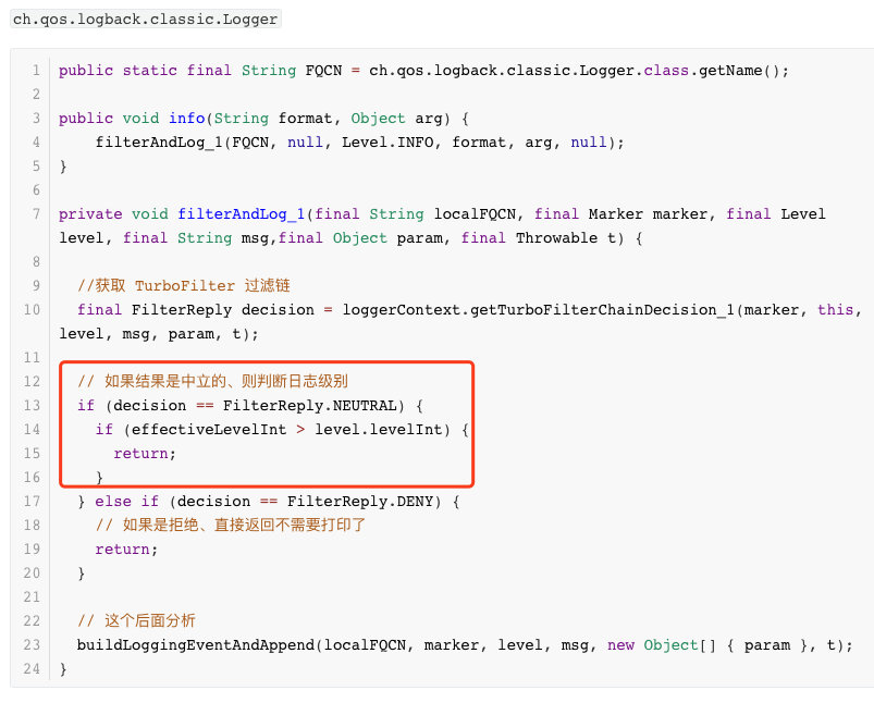 final FilterReply decision = loggerContext.getTurboFilterChainDecision_1(marker, this, level, msg, param, t);