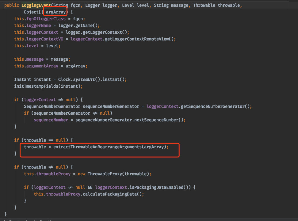 LoggingEvent le = new LoggingEvent(localFQCN, this, level, msg, t, params);