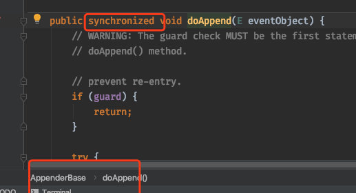 * The guard prevents an appender from repeatedly calling its own doAppend