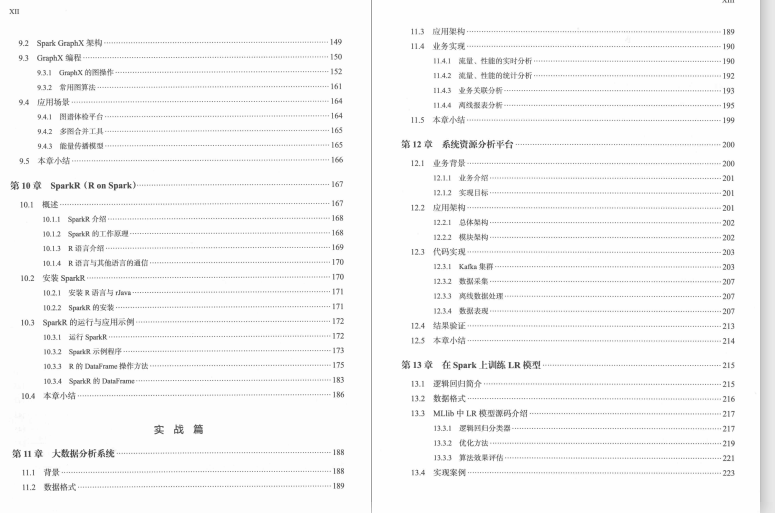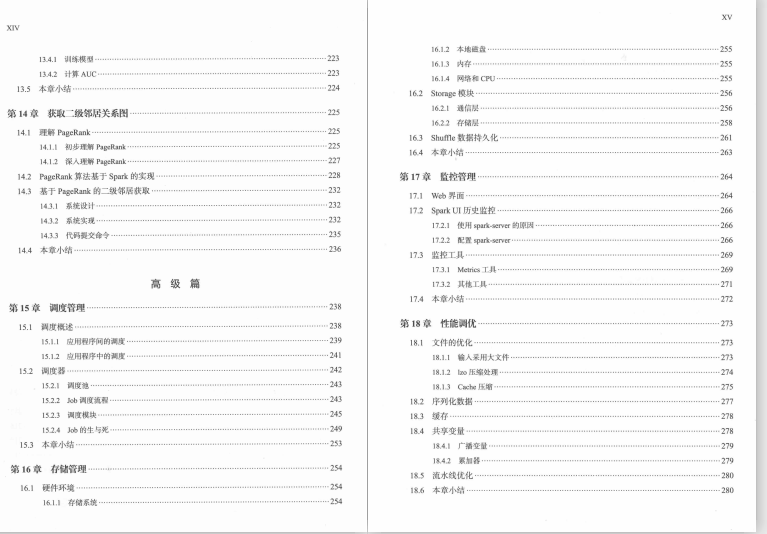 - 高级篇(第15~ 18章):深入讲解Spark调度管理、存储管理、监控管理、性能调优。