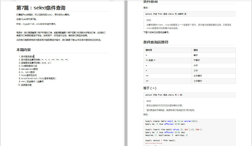 此时我们需要使用条件查询来对指定表进行操作,我们需要了解sql中的条件查询常见的玩法。