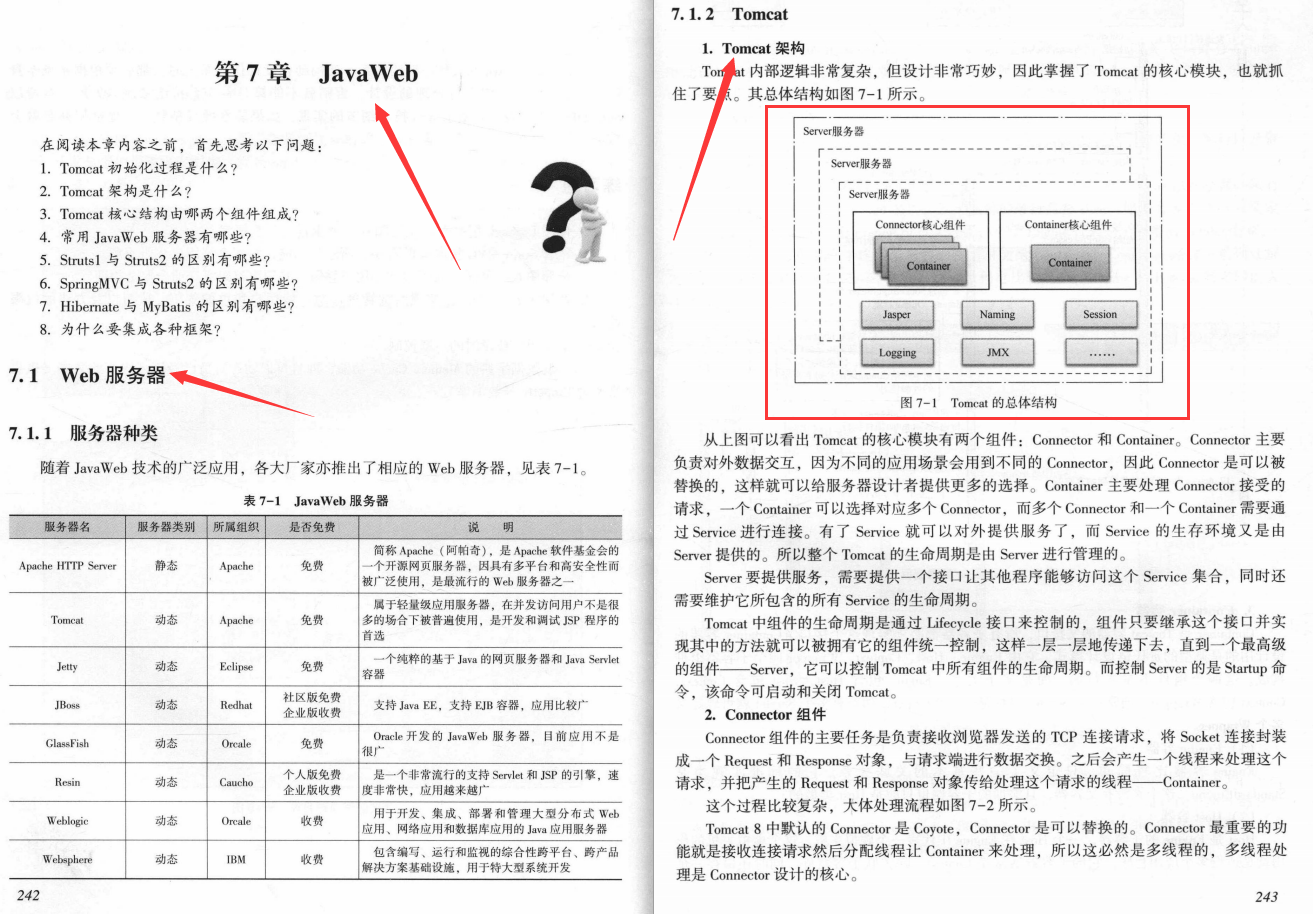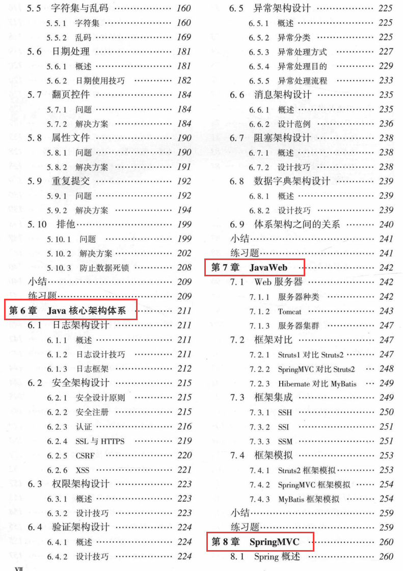第6章介绍了Java 八大核心架构体系,架构师在设计任何系统时,都必须根据系统本身特点对这些体现结构进行合理的设计,否则就不能算是-一个合格的系统。另外,本章以SpringMVC为代表,介绍了部分技术细节的实现,如果能掌握其精髓,其他框架亦会融会贯通。