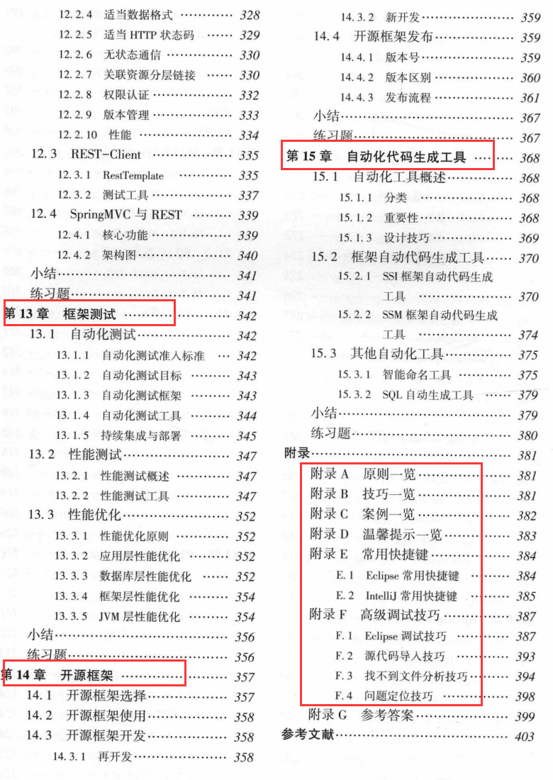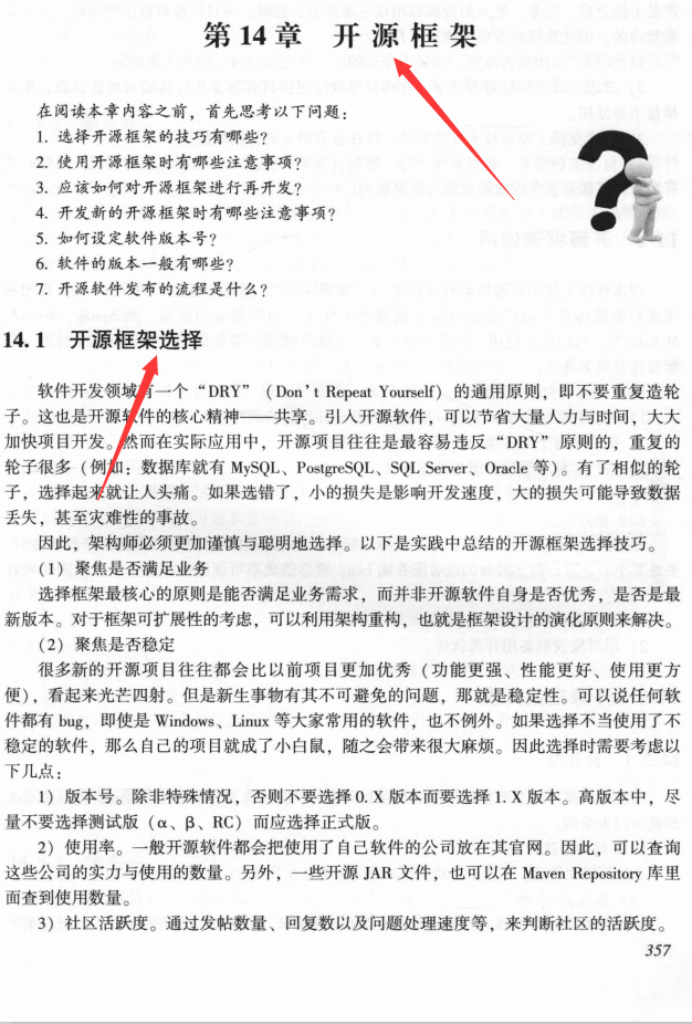 第14章介绍了开源框架的选择、使用、开发以及发布中的必备技术。能够开发开源软件以及具有开源、知识共享思维与境界,是一名优秀架构师必备的素养。当自已开发的软件在全球成功发布并被更多人利用时,这种成就感与心中的喜悦是无可比拟的。