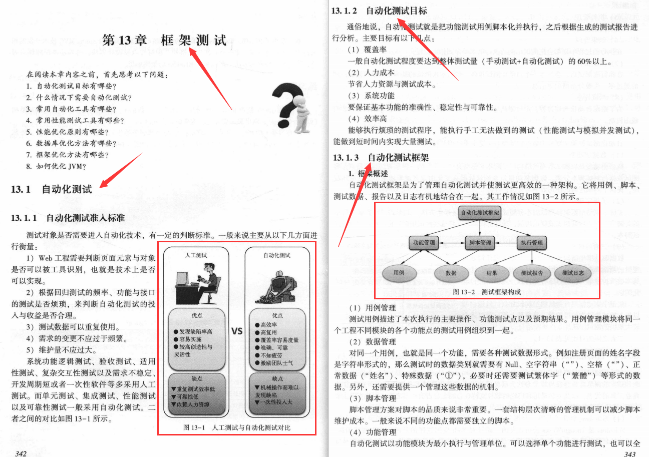 第13章:无论是开源框架还是自已公司开发的商业框架都属于产品,而产品是需要不断升级的。为了实现CI/CD,同时也是为了提高测试效率,保障产品品质,设计自动化发布与测试框架势在必行。但是,自动化工具不是万能的,它们各有优缺点,要扬长避短。另外,要注意自动化不能完全取代人工测试。
