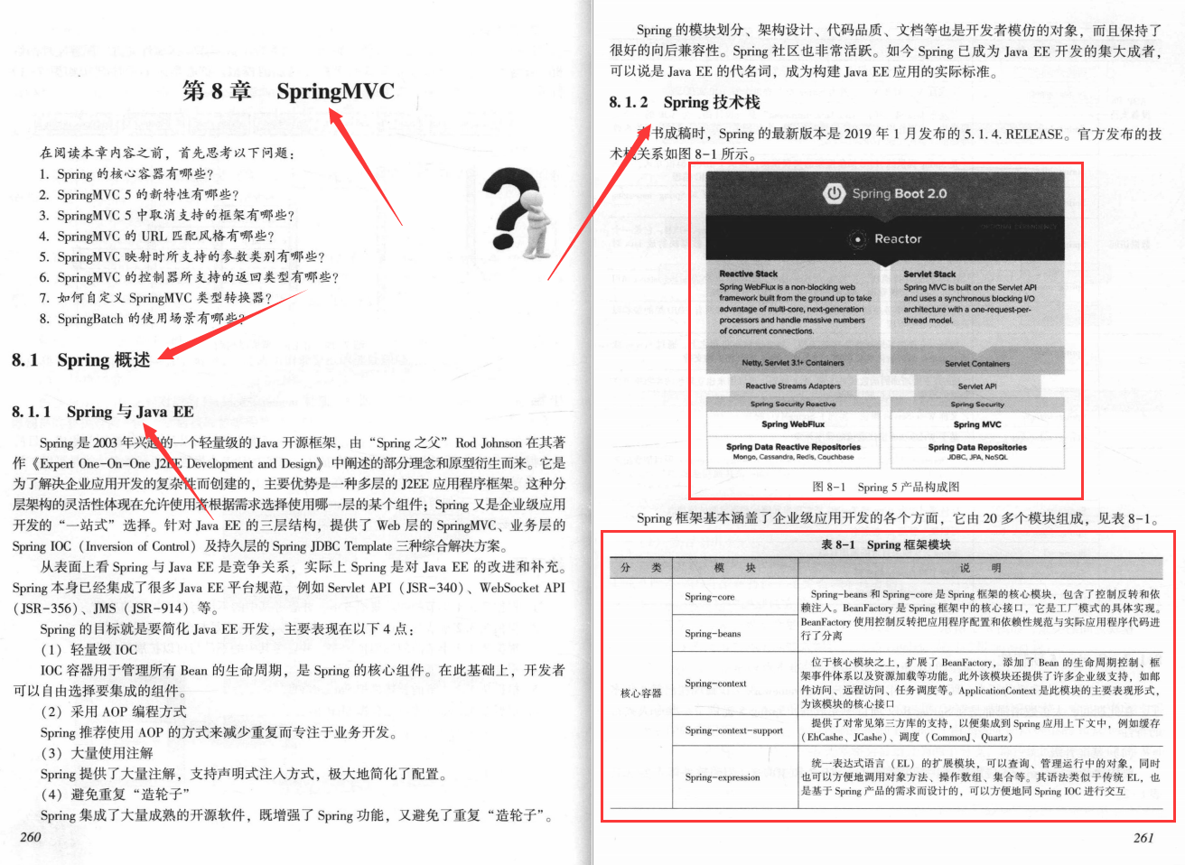 第8章介绍了SpringMVC最为核心的相关技术,其他如入参类型转换( InitBinder)、输入数据验证、文件上传、拦截器、国际化、静态资源处理、主题与Tiles集成等相关内容,感兴趣的读者朋友可以查阅官网相关资料。另外,一个庞大的综合Java EE系统,还包括相关批处理程序,因此本章也介绍了常用的SpringBatch技术,读者朋友可以根据实际项目的需求来灵活运用。