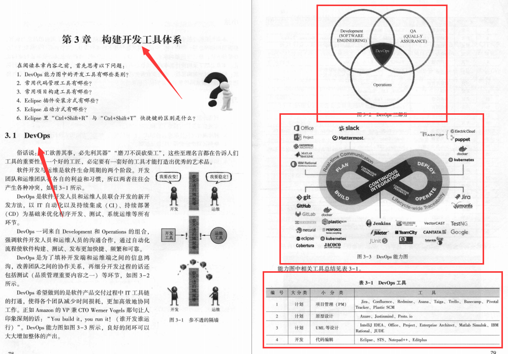 第3章,DevOps小节介绍了软件生命周期中各个环节的工具生态圈,虽没必要掌握所有工具的使用方法,但是对各个领域的常用工具必须有所了解。对于重要的常用工具,不仅要学会使用,还需要学会优化。3.4节以Eclipse 为例介绍了优化过程,其他工具亦需要融会贯通。