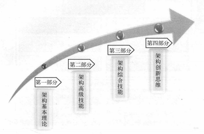 本书共15章,分为架构基本理论、架构高级技能、架构综合技能以及架构创新思维四部分,如下图所示。