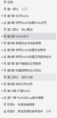 第二部分:对Redis 的多个命令进行了详细的介绍,之后还介绍了Redis 的管理操作以及使用Redis构建更复杂的应用程序的方法