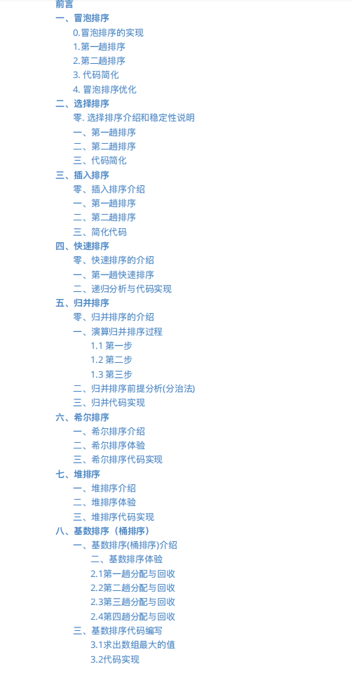 下面简单介绍一下八大基础排序和基础的数据结构,每种排序的思想和基础的讲解和源码在PDF里边有。