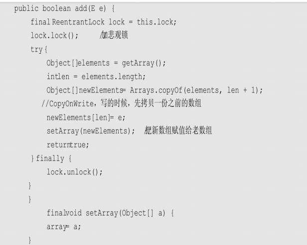 CopyOnWrite指在“写”的时候,不是直接“写”源数据,而是把数据拷贝一份进行修改,再通过悲观锁或者乐观锁的方式写回去。那为什么不直接修改,而是要拷贝一份修改呢?这是为了在“读”的时候不加锁。下面通过几个案例来展现CopyOnWrite的应用。