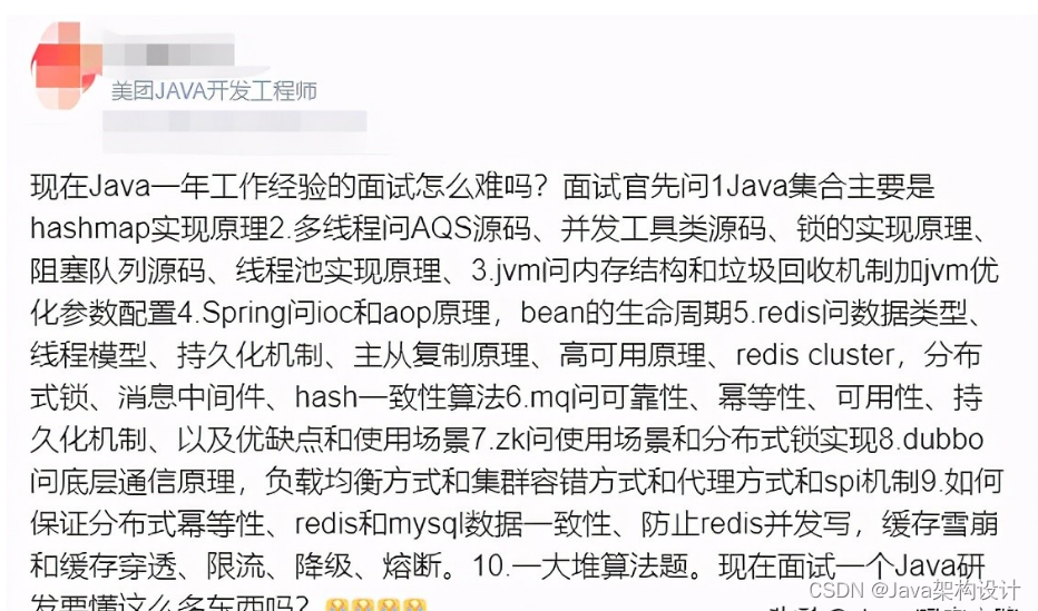 通过和大厂的面试官聊了一下发现,现在大厂特别爱考底层的一些原理,因为一些底层是不涉及到语言的,语言对于开发工程师来说是是吃饭的工具,但对于架构师的层面的人来说就工具而已,这也是大厂培养人的一个方向。