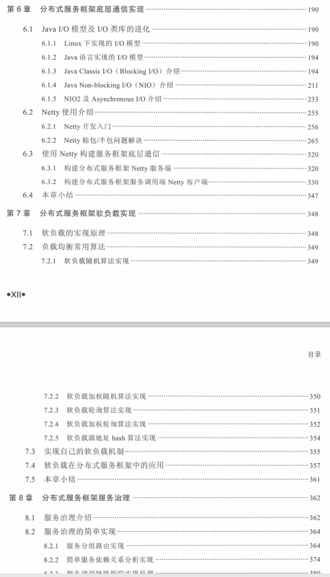 第6章围绕系统之间底层通信相关的知识点来组织,从Javal/O体系(阻塞I/0、NIO、NIO2)到Netty相关知识均做了详细介绍。最后就使用Netty实现分布式服务框架底层通信给出了代码实现。