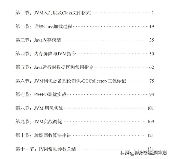 除了60W年薪架构师简历之外,还有一份可以让你再简历上写精通JVM的技术文档,包含11个JVM的技术点,大家可以看一下: