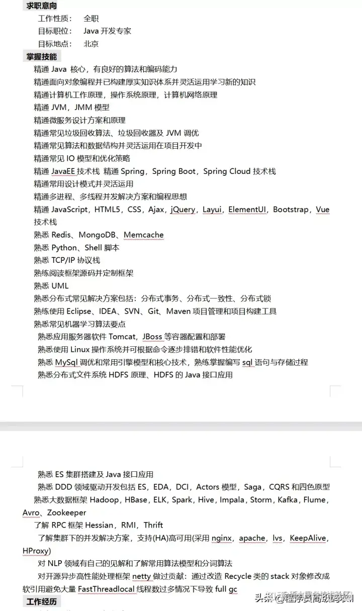 除了所掌握的技能之后,还有工作经历+个人经历+自我的评价,内容太多不方便透露给大家 。