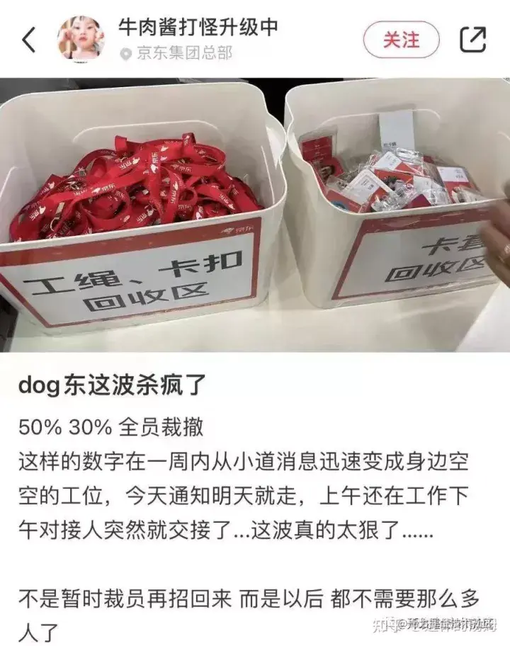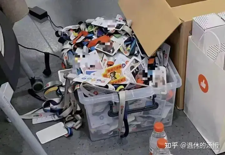 从网友爆料的一张发图发现,离职员工的工牌也马上堆满收纳箱了。