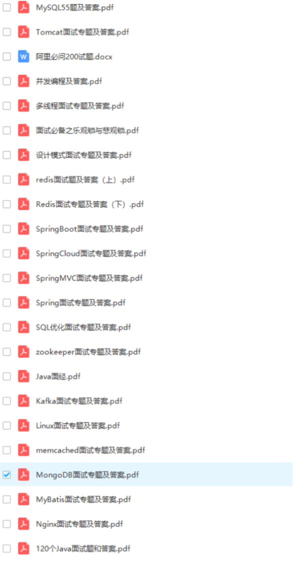 由于面试文档很多,内容更多,没有办法一一为大家展示出来,所以只好为大家节选出来了一部分供大家参考