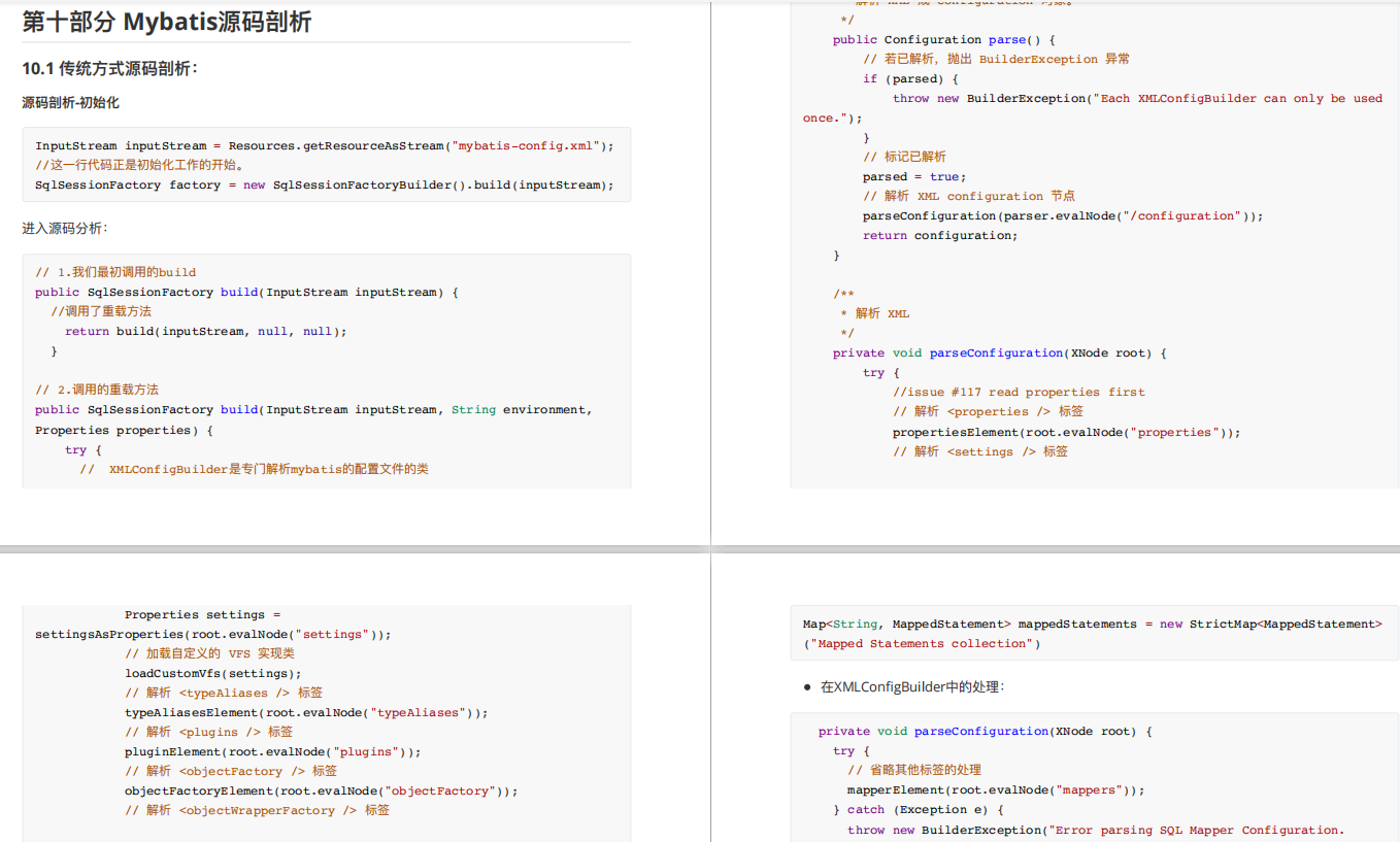 然而在很多博客或者百度上都没有系统详细的笔记总结,零零散散,直到今天终于看到有人把MyBatis从入门到源码解析总结的如此系统!在实际工作中遇到过MyBatis 一些诡异的问题,如:关联查询时结果集为什么和预想的不一致?如果你在面试过程中遇到过“请你谈谈#和$的区别”,如果你想自己实现一套 ORM 框架而没有好的想法时,还有如果你只是想简单的通过阅读 MyBatis 源码来提升自己的技术水平,我相信这份总结对你来说肯定会很有帮助!