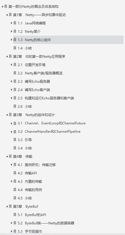 - 第一部分是Netty实战,共有四部分,有15个章节,是本文档的主体内容,可以帮助你快速学好Netty。