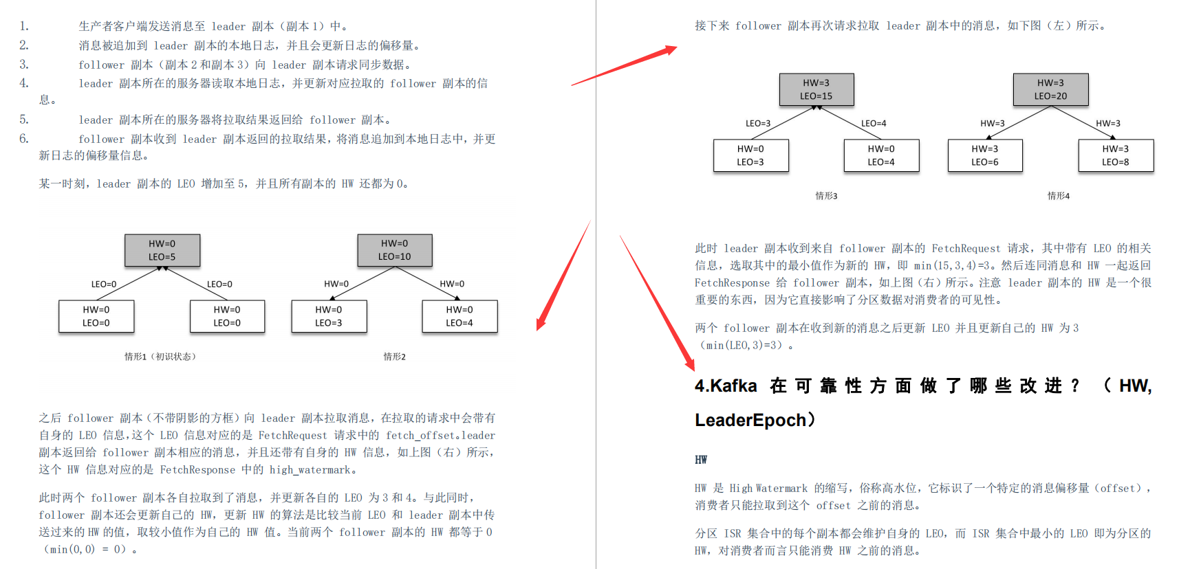 - 多副本下,各个副本中的HW和LEO的演变过程