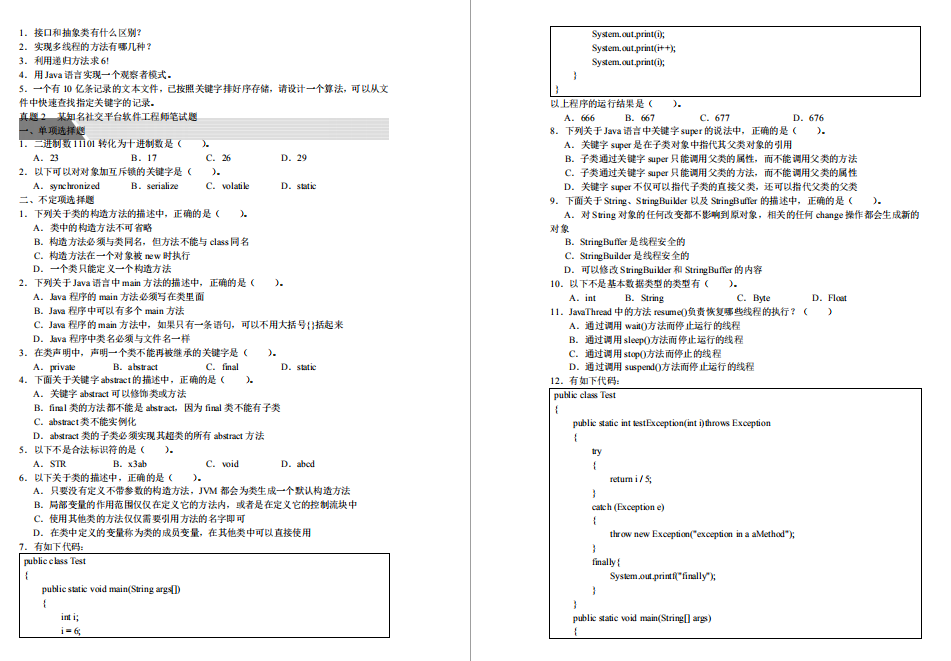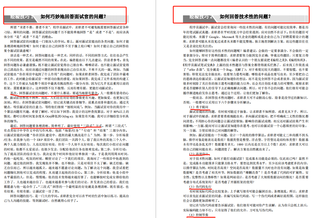 在这里呢,小编找到了来自阿里大佬的两份PDF文档资料,里面总结了程序员笔试和面试的经验,及真题。