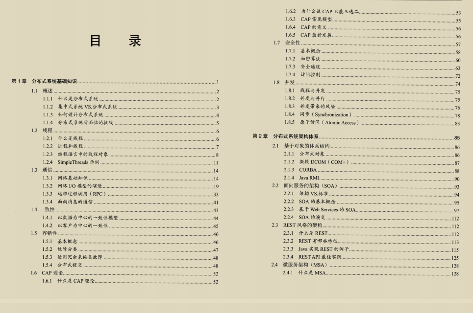 第一部分主要介绍分 布式系统基础理论知识,总结一些在设计分布式系统时需要考虑的范式、知识点以及可能会面临的问题,其中包括线程、通信、一致性、 容错性、CAP理论、安全性和并发等相关内容;同时讲述分布式系统的常见架构体系,其中也包括最近比较火的RESTful风格架构、微服务、容器技术等。