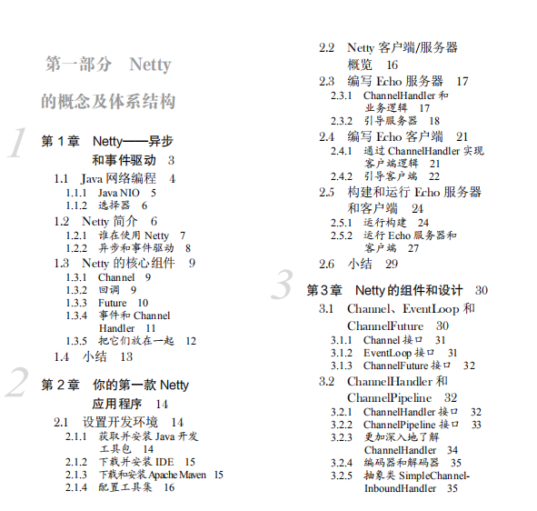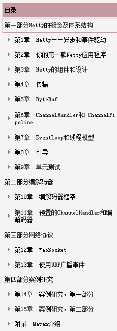 本书共分为 4 个部分(共15章)循序渐进的地介绍了 Netty各个方面的内容。:
