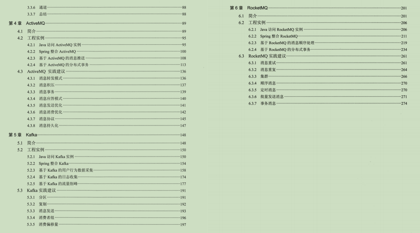 Alibaba在这片领域还是很有话语权的,介绍到的都是市面上主流也是应用最为广泛的四种消息中间件产品。可以看到,在整本书中不仅仅只是介绍这些消息中间件的来源、特性、Java 语言使用的示例,同时也结合具体业务场景的应用案例,最后给出在实际项目中使用时的一些建议和需要综合权衡的技术要点。