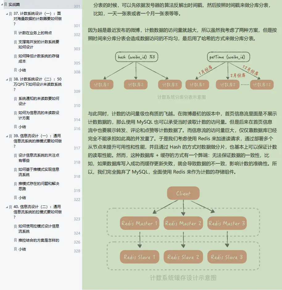 所以,为了将我们提及的知识落地,在实战篇中,我会以微博为背景,用两个完整的案例带你从实践的角度应对高并发大流量的冲击,期望给你一个更加具体的感性认识,为你在实现类似系统的时候提供一些思路。