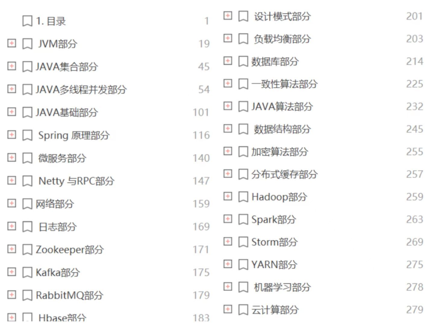 这份笔记分为 Java 基础、并发编程、JVM、Dubbo、MyBatis、Kafaka、RabbitMQ、Redis、Netty、Spring、Spring boot、Spring Cloud、Zookeeper、计算机网络、HR 常问、MySQL 优化、高频 sql 笔试、分布式部分等 30 个知识点;