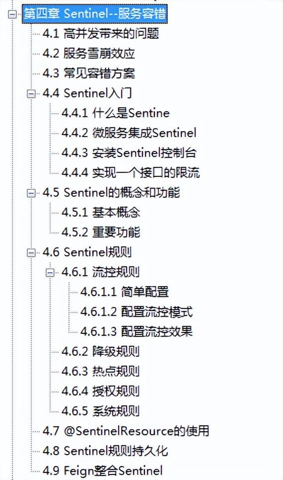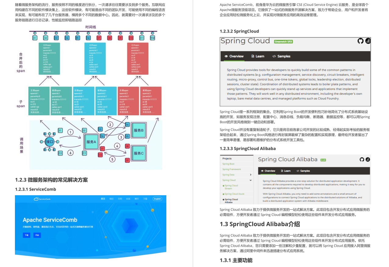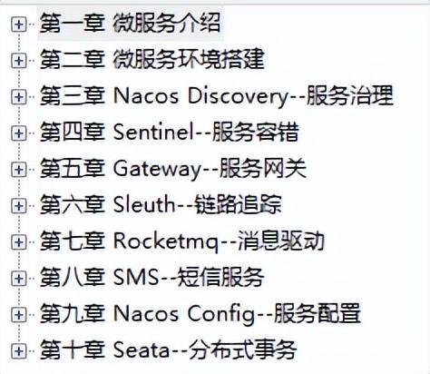 除第一章微服务介绍和第二章微服务环境搭建外,其他章节皆为 Spring Cloud Alibaba 相关组件的介绍及使用,下面将具体内容展示出来: