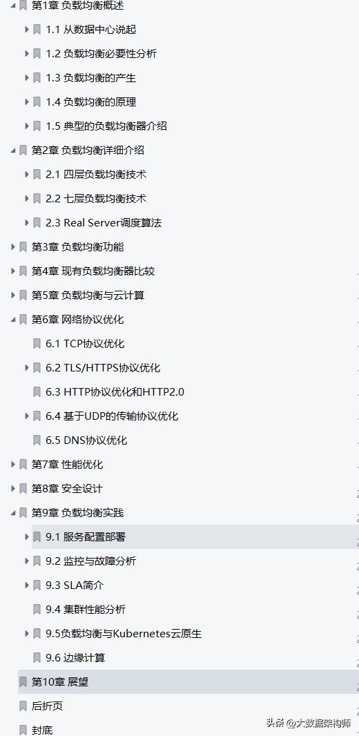 本文包含的主要内容 本文总共包含10章的内容,第1章负载均衡概述,第2章负载均衡详细介绍,第3章负载均衡功能,第4章现有负载均衡器比较,第5章负载均衡与云计算,第6章网络协议优化,第7章性能优化,第8章安全设计,第9章负载均衡实践,第10章展望。