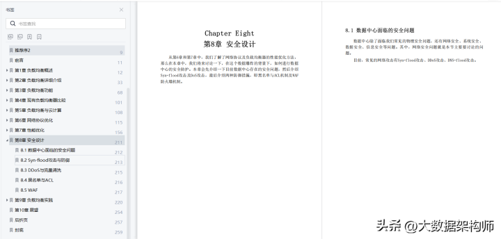 第8章安全设计,从第6章和第7章中,我们了解了网络协议及负载均衡器的性能优化方法,那么在本章中,我们将来讨论一下,在这个数据爆炸的背景下,如何进行数据中心的安全防护。本章会先介绍一下目前数据中心存在的安全问题,然后介绍Syn-flood攻击及DoS攻击,最后介绍两种防御措施,即黑名单与ACL机制及WAF防火墙机制。
