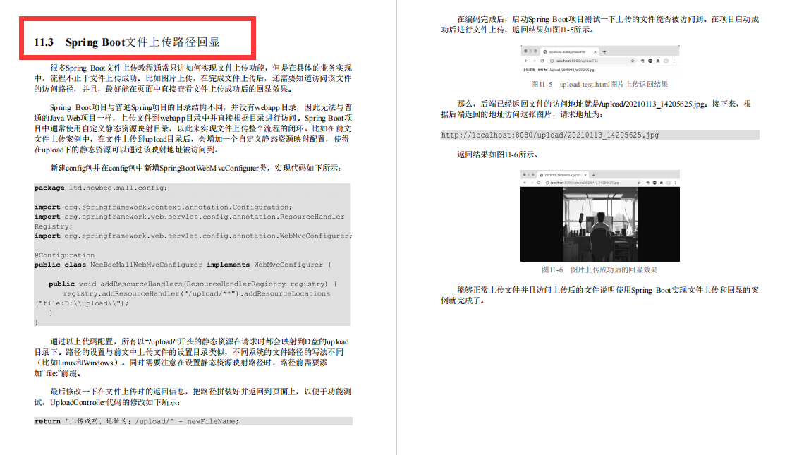 文件上传是被用户熟知的常见功能模块,其常用场景有头像设置、产品预览图、报表文件上传等。本章将结合实际案例讲解如何使用 SpringBoot 实现文件上传及其相关的注意事项,并结合源码对文件上传的流程及功能设计进行讲解。