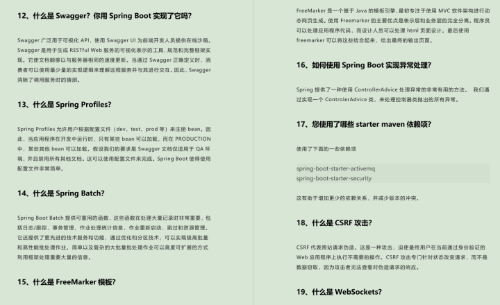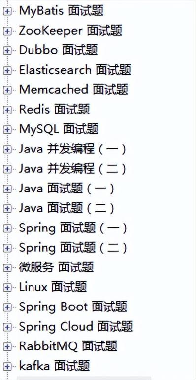 内容涵盖:Java、MyBatis、ZooKeeper、Dubbo、Elasticsearch、Memcached、Redis、MySQL、Spring、Spring Boot、Spring Cloud、RabbitMQ、Kafka、Linux 等技术栈,下面将这份手册展示给大家: