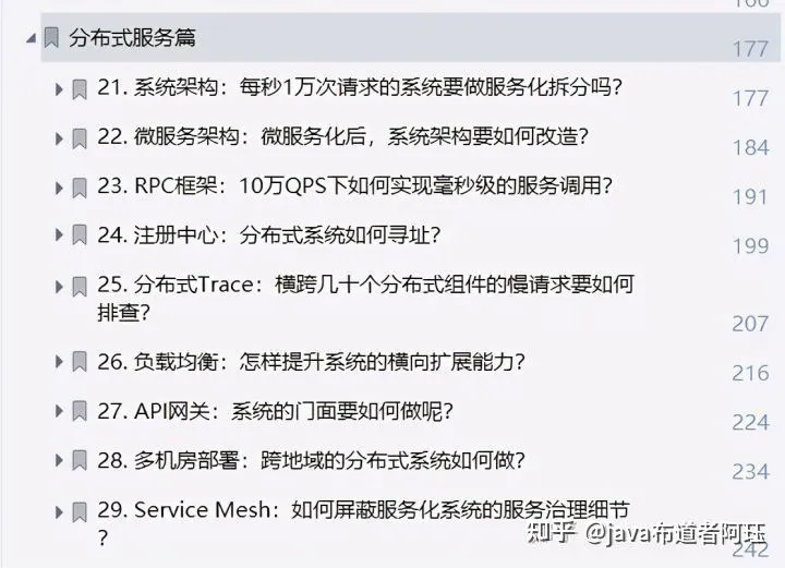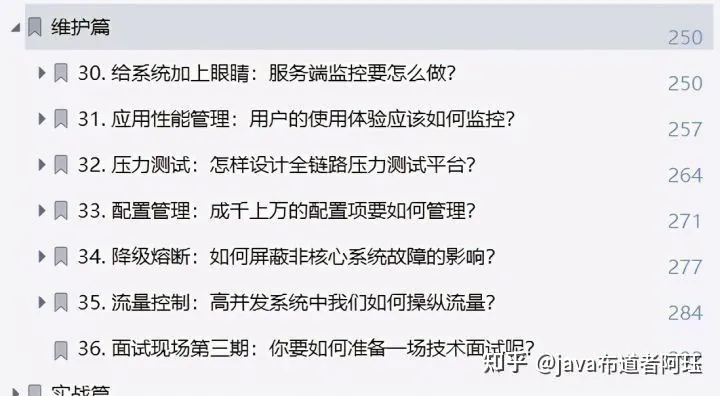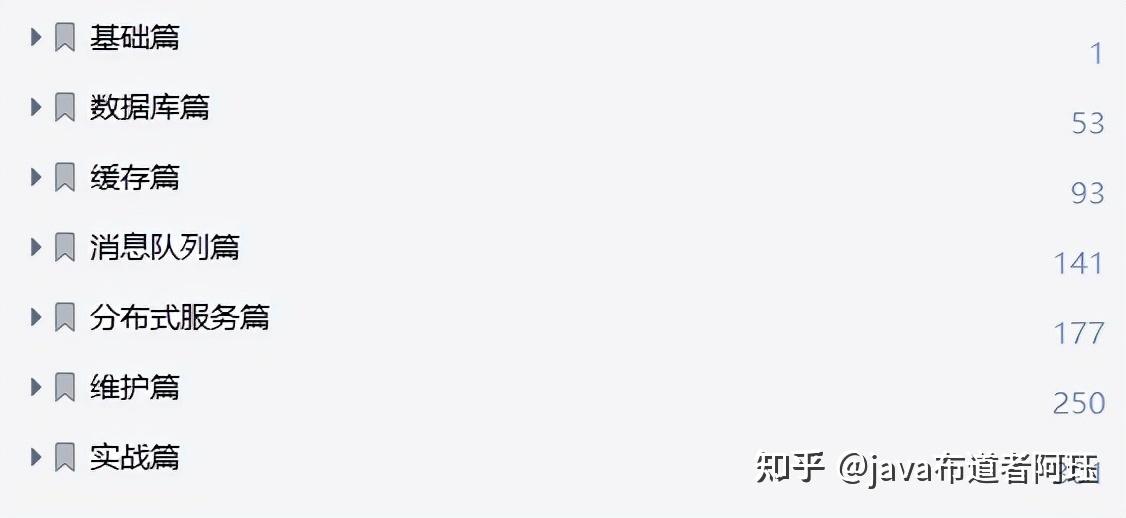 此份手册又份为六个部分,基础篇、数据库篇、缓存篇、消息队列篇、分布式服务篇、维护篇、实战篇共计328页