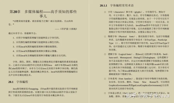 第20章 介绍多媒体编程,引导读者走进Java,包括图形、图像、字体、颜色以及音频播放多媒体编程世界。