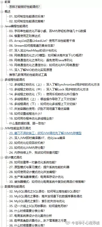小册内容从如何制定性能调优与策略开始,把 Java 编程、多线程、JVM、设计模式、数据库五个方面的性能优化细节陈述得清清楚楚,最后还把阿里双十一性能调优实战过程完整的呈现给读者,大家看了之后就知道到底有多香了~
