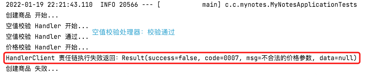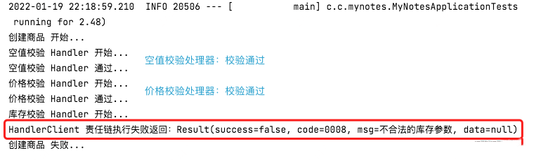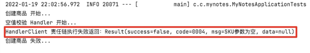 NullValueCheckHandler:空值校验处理器。针对性校验创建商品中必填的参数。如果校验未通过,则返回错误码ErrorCode,责任链在此截断(停止),创建商品返回被校验住的错误信息。注意代码中的降级配置!