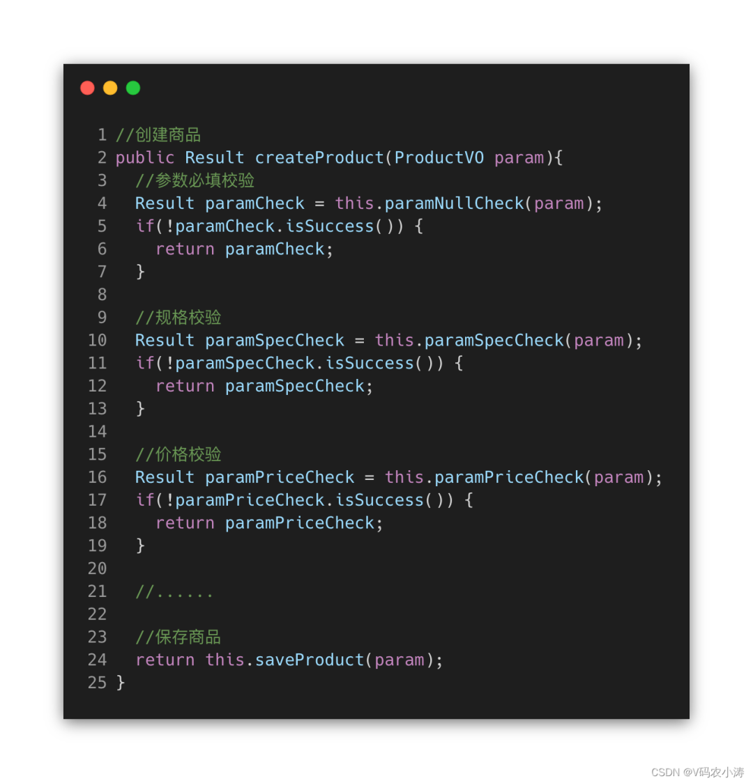 以创建商品为例,假设商品创建逻辑分为以下三步完成:①创建商品、②校验商品参数、③保存商品。