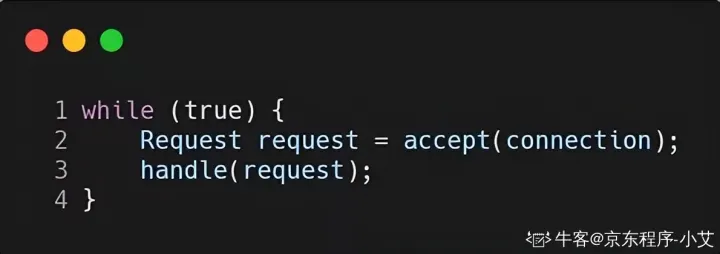 如上述代码所示:我们可以理解 Kafka 每个服务器启动起来后就是一个 while 循环, 不断的 accept 生产者提交上来的请求, 然后进行处理并存储到磁盘上,这种方式实现最简单,也非常好理解,但是这种方式存在2个致命的缺陷?