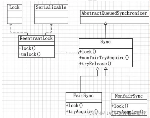 以 ReentrantLock 作为切入点,来看看在这个场景中是如何使用 AQS 来实现线程的同步的