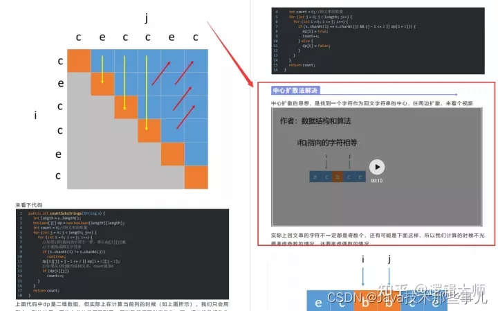 中心扩散的思想,是找到一个字符作为回文字符串的中心,往两边扩散,来看个视频