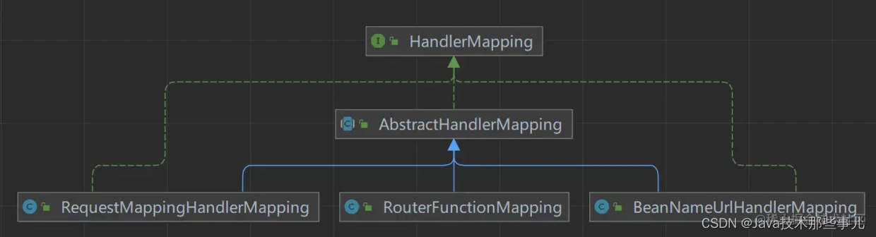 各个HandlerMapping除开负责寻找Handler并记录映射关系之外,自然还需要根据请求路径找到对应的Handler,在源码中这三个HandlerMapping有一个共同的父类AbstractHandlerMapping