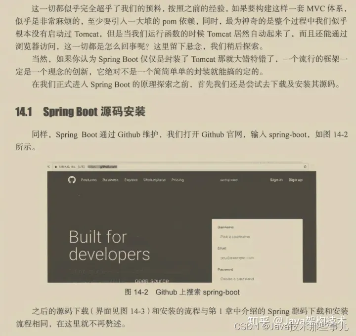 第2部分,企业应用:在核心实现部分的基础上围绕企业应用用的模块进行讨论,这些模块包括Spring整合JDBC、Spring整合MyBatis、事务、SpringMVC、远程服务、Spring消息服务等,方便大家在日常开发中更加高效地使用Spring.
