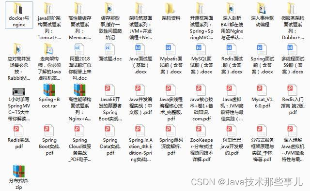 作为后端Java过来人,小编是整理了很多进阶架构视频资料、面试文档以及PDF的学习资料,针对上面一套系统大纲小编也有对应的相关进阶架构视频资料,如果‘你’确定好自己未来的道路或者想学习提升自己技术栈、技术知识的小伙伴们可以找小编获取